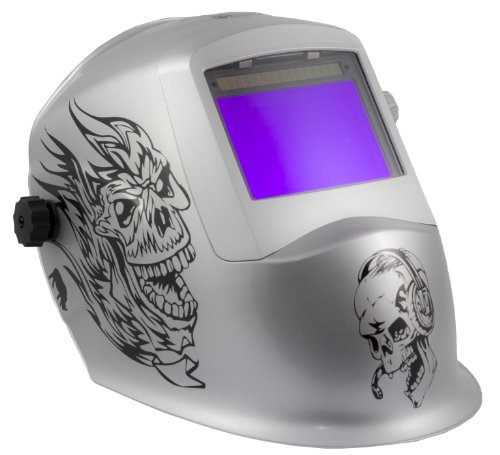 @@@ > Get a Huge Selection Rhino BIG VIEW Auto Darkening Welding Helmet Hood Mask - Battery and Solar Combo - Silver Skulls RH12