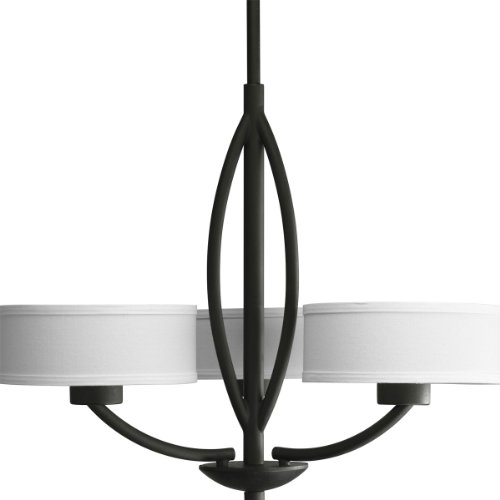 ^^^^ Get a Today Sale Progress Lighting P4537-80 Calven Three Light Chandelier, Forged Black Finish with White Fabric Shade