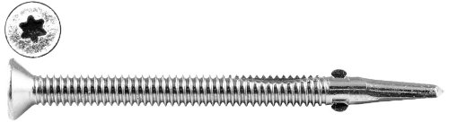 Reamer Tek Wood To Steel Zinc Plated Star Drive with Flat Head and Wings, #14-20 x 2-3/4". Use T30 bit and conveniently packed in a reusable bulk container of 1000 piece count. Includes one “Free Bit-Inch. Excellent for truck and trailer beds with no pre-drilling required. Drilling Capcity 1-1/2" wood to .250 metal, with #4 Drill Point.