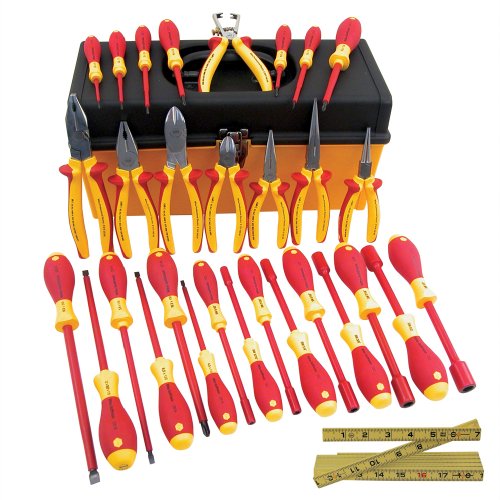 Wiha 32896 Master Electrician Insulated Pliers and Screwdrivers With 6 Foot Fiberglass Folding Ruler, 1000 Volt, 31 Piece Set Info
