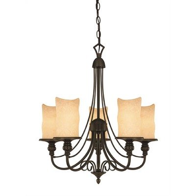 Westinghouse 69001 Hearthstone Five-Light Chandelier, Burnished Bronze Patina Finish with Burnt Scavo Globe Info