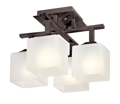 Influenced by the linear style of great architecture, this semi-flushmount ceiling light fixture features strong, bold framing and gorgeous square glass. The frame comes in a Florida bronze finish. The frosted glass looks modern and handsome with square shape and perfect symmetry.