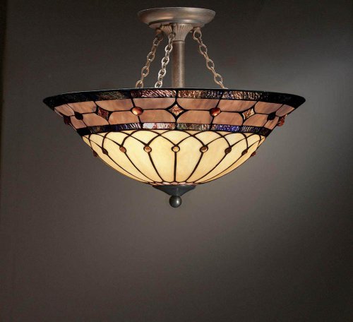 ^^^^ Get a Check Price Kichler Lighting 69048 3-Light Dunsmuir Art Glass Semi-Flush Ceiling Light, Art Nouveau Bronze Finish