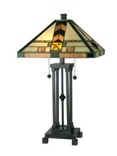 Dale Tiffany TT10035 Mission Table Lamp, Dark Antique Bronze and Art Glass Shade Info