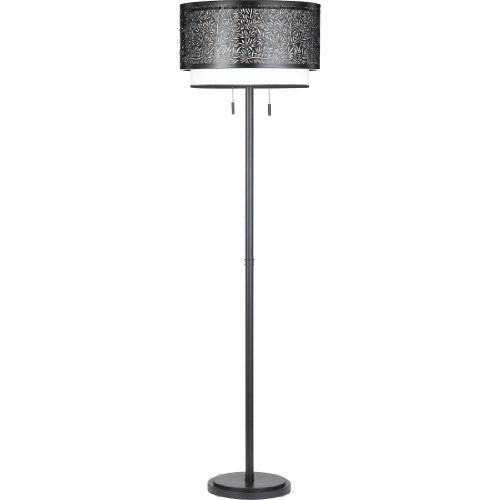 Sometimes, a name says it all - especially in the case of the prettily perfect Quoizel Utopia UT9362K Floor Lamp - 18W in. - Mystic Black. Sure to make any room more heavenly, this steel-framed floor lamp has a cream-colored silk drum shade that peeks out from under the mystic black overlay. Best of all, this overall is covered in a cutout leaf motif that's sure to garner more than a few admiring gazes. The lamp operates with a pull chain on/off socket, and it requires two 75-watt medium base bulbs (not included).About Quoizel LightingLocated in Charleston, South Carolina, Quoizel Lighting has been designing timeless lighting fixtures and home accessories since 1930. They offer a distinctive line of over 1,000 styles, including chandeliers, lamps, and hanging pendants. Quoizel Lighting is the perfect way to add an inviting atmosphere to any area in your home, both indoors and out.