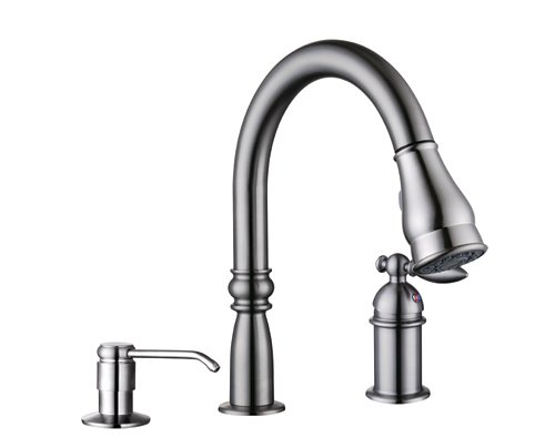 $$ Get a Best Price Ana Bath KP131330 Single Handle Pull Down Kitchen Faucet Spray with Soap Dispenser, PVD Brushed Nickel Finish