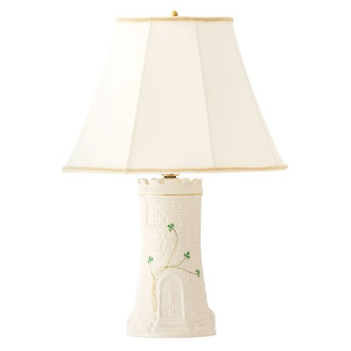 The Belleek castle lamp is reminiscent of an old Irish castle and hand painted with shamrocks