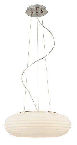 This light is a pretty and graceful example of modern design. The oval glass bowl is rippled with concentric rings. Adjustable hang height is pre-set at 36". This modern pendant chandelier glows with a warm light and is a great accent to your dining room, entryway or bedroom. From the Possini Euro Design lighting collection.