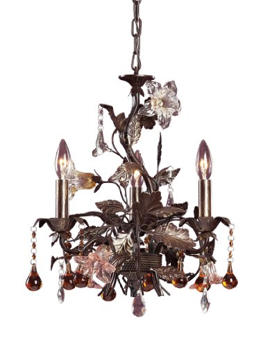 Elk 85001 3-Light Chandelier In Deep Rust and Hand Blown Florets Info